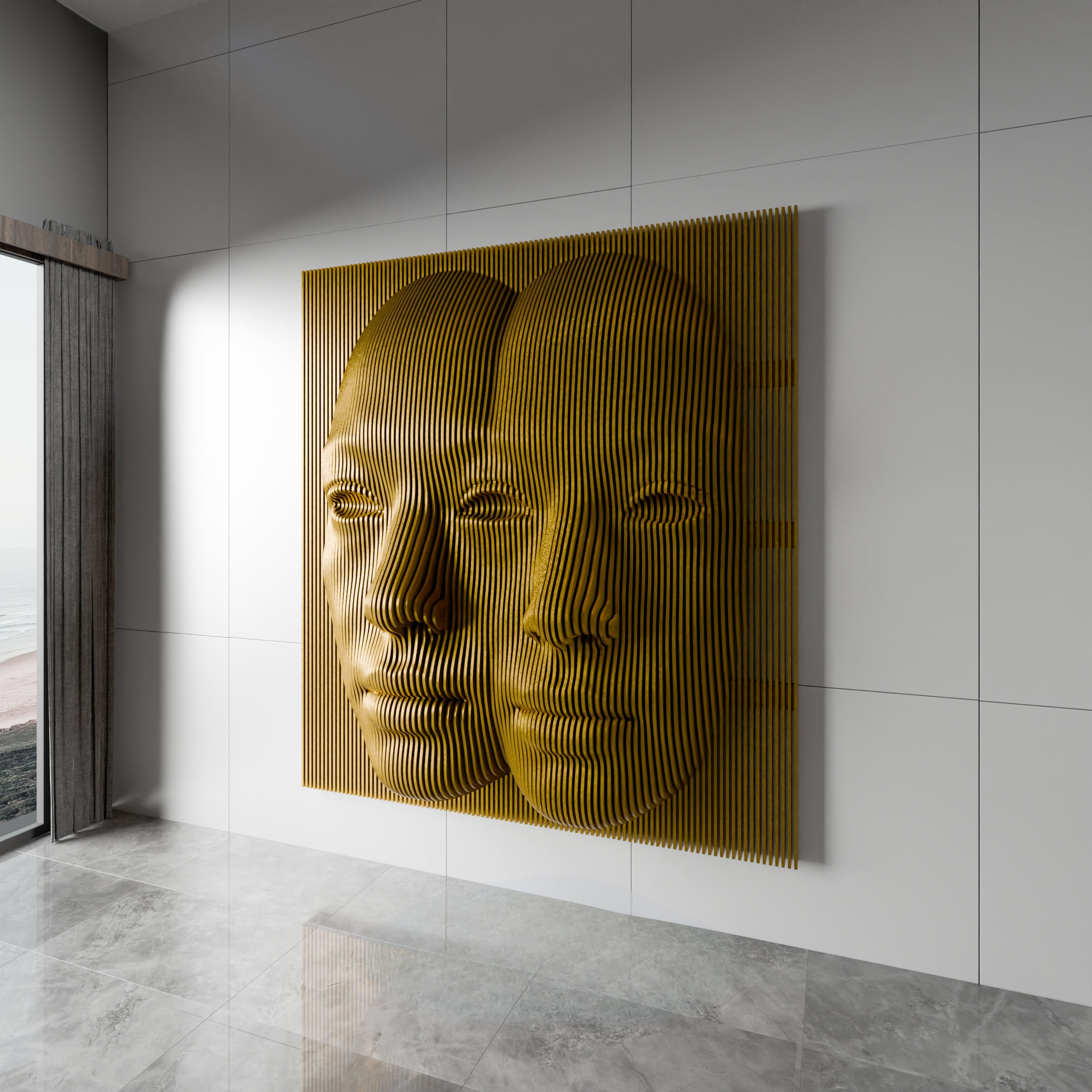 يرتكز هذا العمل الفني الجداري على مفهوم "الموجات الصوتية المتجسدة"، المصنوع من ألواح مموجة ثلاثية الأبعاد باللون الأزرق الداكن، ليُشكل شكلاً متدحرجاً - كالموجات الصوتية المتجمدة في نسيج بصري للفضاء - جامعاً بين الزخرفة الصوتية والجماليات الفنية.