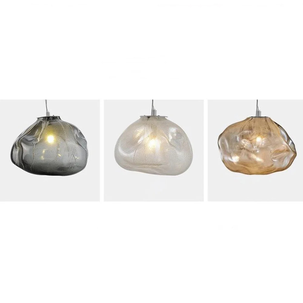 Each frosted, organic glass orb mimics wispy cumulus clouds at dawn: irregular, luminous, and uniquely shaped (no two pieces are identical, a hallmark of artisanal craft). Strung at staggered heights on fine steel cables, the cluster floats above spaces like a weightless formation, blurring the line between sculpture and function. When lit, the glass diffuses a warm, diffused glow that spills over surfaces—turning a dining table into a stage for intimate meals, or a lounge into a serene retreat. Unlit, the milky-white orbs catch ambient light, their subtle texture adding quiet luxury to modern interiors (as seen in this sophisticated gathering space).