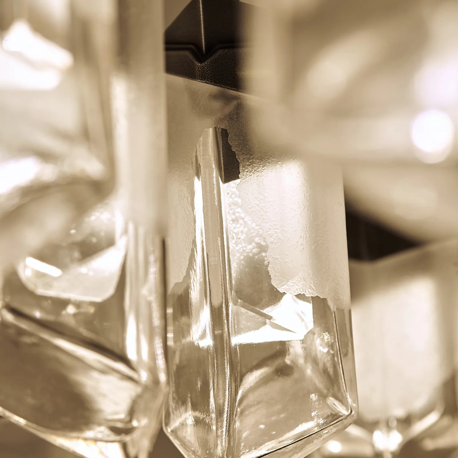 - When illuminated, the glass prisms refract light to produce crisp, bright highlights, while the layered arrangement adds depth (suitable for neutral, minimalist interiors).