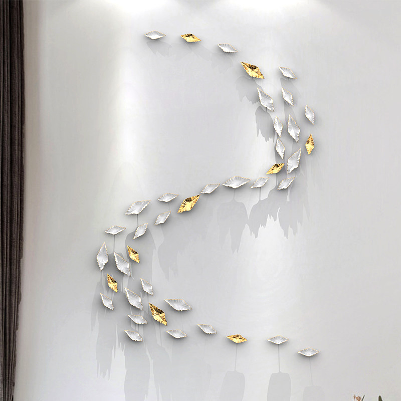 This wall installation takes "fluttering wings" as its design imagery, using irregular sheet modules in gold and white that are directly fixed to the wall—like flying feathers spreading along the wall, combining light texture and dynamic rhythm, fitting light luxury, modern elegant corridors or passage spaces.
