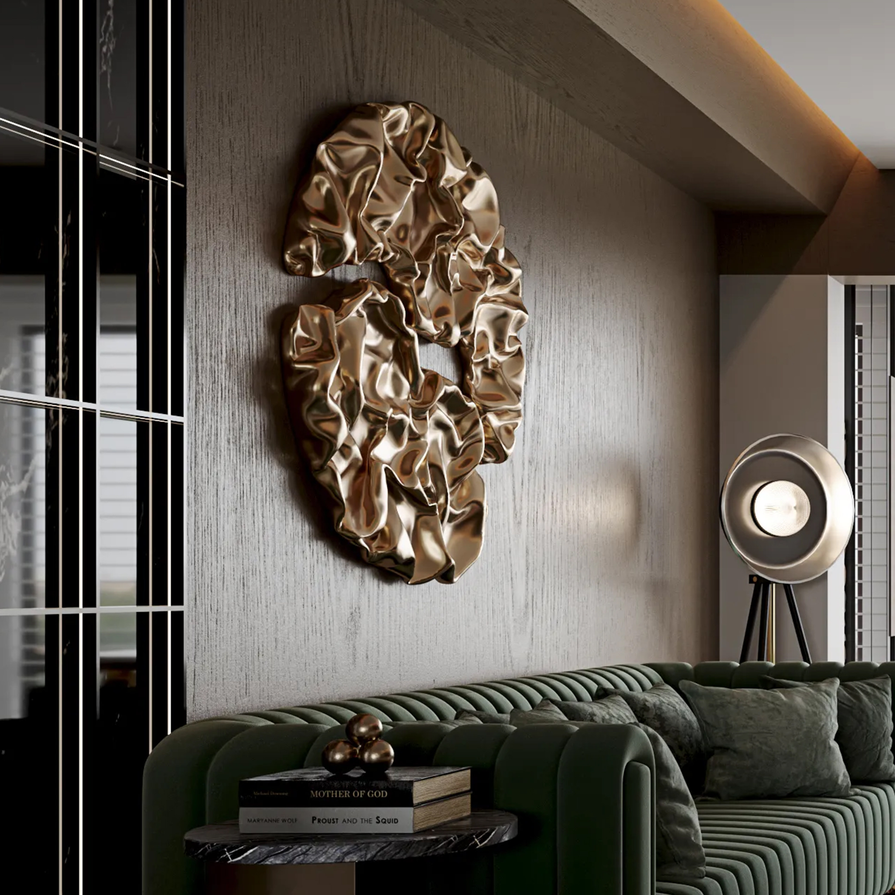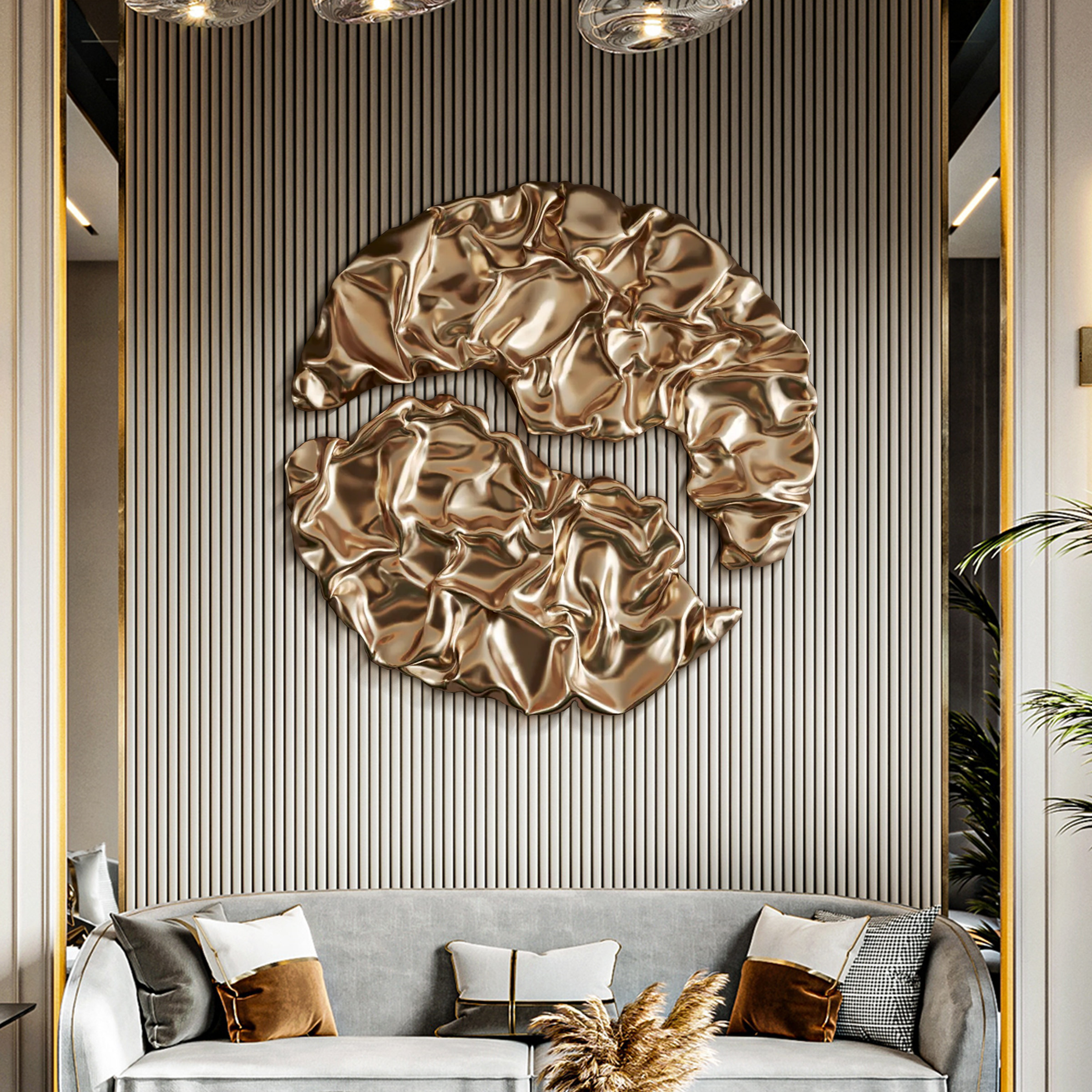 As a "cultural symbol carrier" for the space, it fits both new Chinese style, light luxury and other style spaces, and can also inject Eastern artistic conception into modern minimalist spaces. The three-dimensional crinkled form breaks the monotony of the wall, while the high-end attribute of the gold-plated material can quickly enhance the artistic style and exquisiteness of the space.