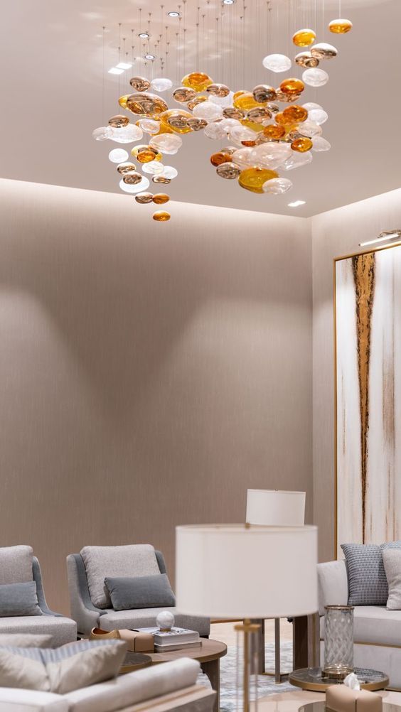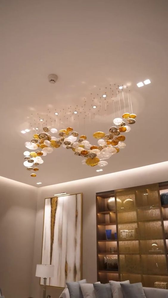 More than decor, it’s an atmospheric embrace: a cloud of amber glass that turns ordinary ceilings into extraordinary, light-bathed sanctuaries of warmth.