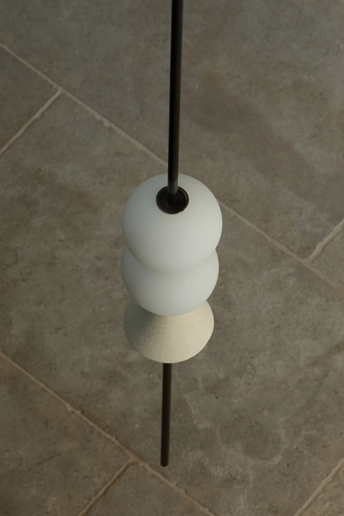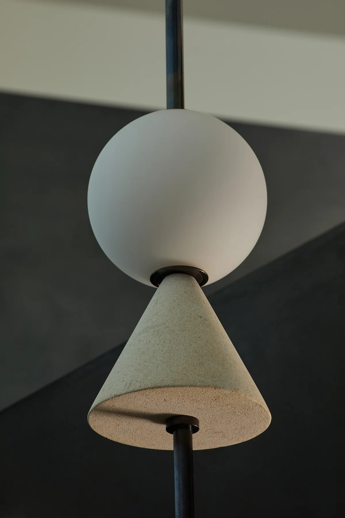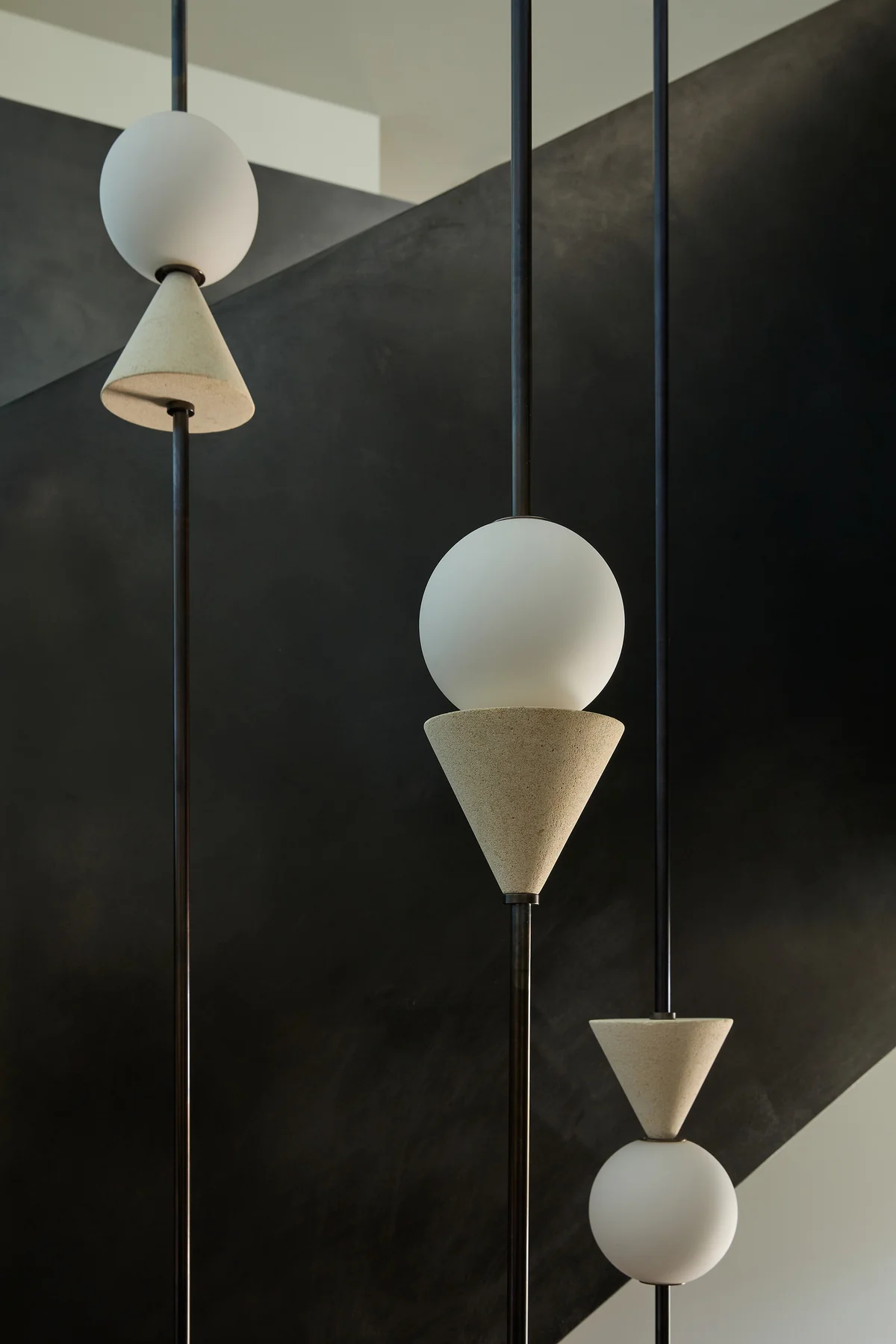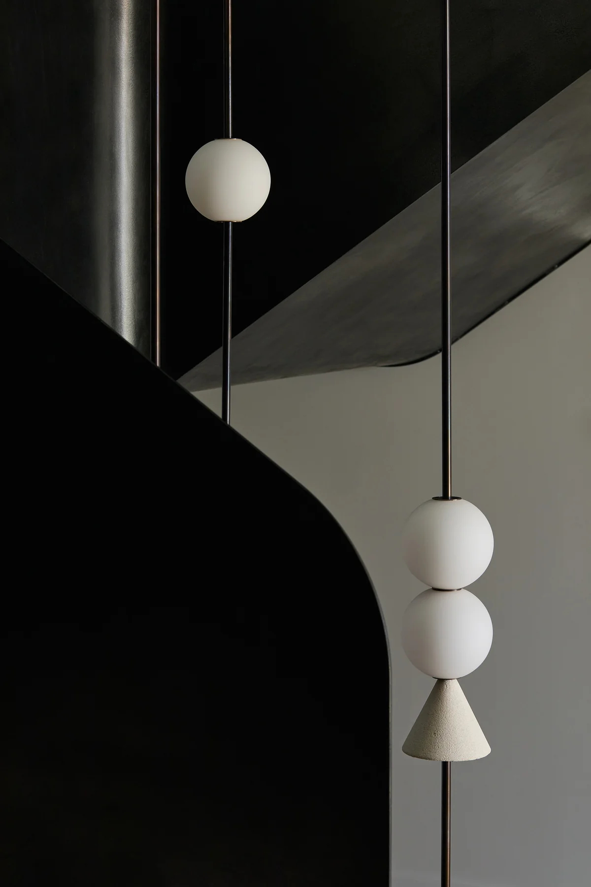 - Core Components: Composed of frosted glass spheres (for soft light diffusion), matte black metal rods (main support structure), and light-colored conical accents (to enhance visual layering).