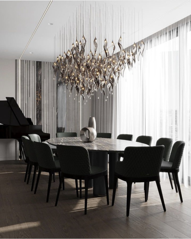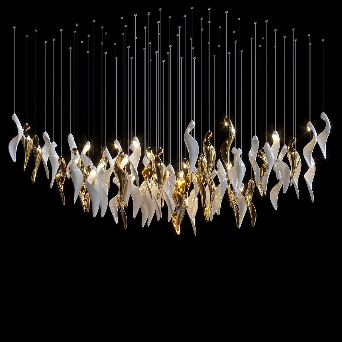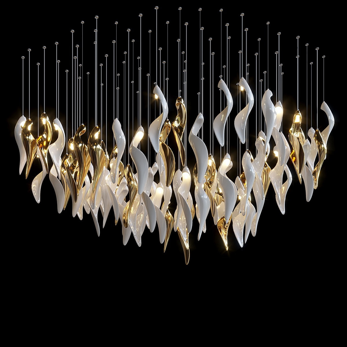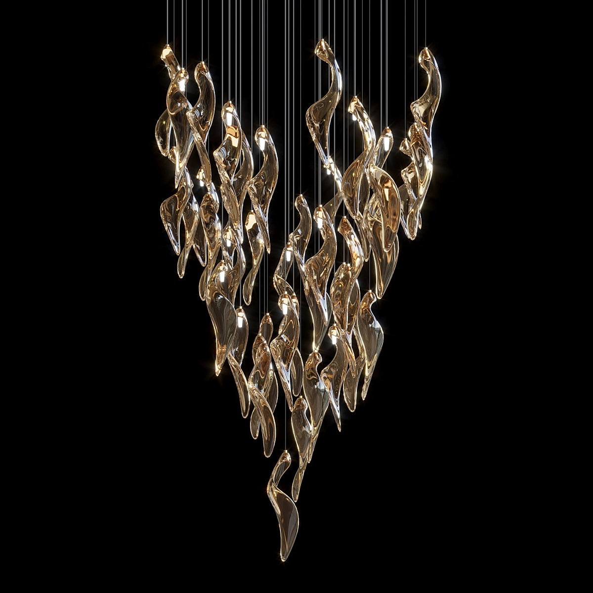 - Material: Hand-blown lead-free crystal glass (high-transparency, scratch-resistant) + stainless steel suspension wires (invisible support) + dimmable LED bulbs.