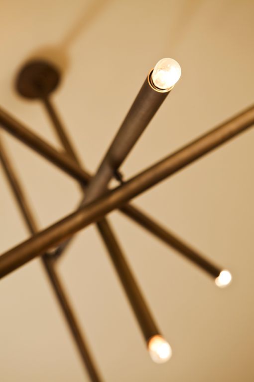 This branched starburst chandelier reimagines ceiling lighting as a sculptural focal point, merging organic modern design with understated luxury. Crafted from brushed brass-finished metal rods (shaped into irregular, tree-branch-like silhouettes), it features 15 small globe LED bulbs (3000K warm white glow) that mimic scattered starlight—creating a soft, layered ambient light ideal for intimate spaces.