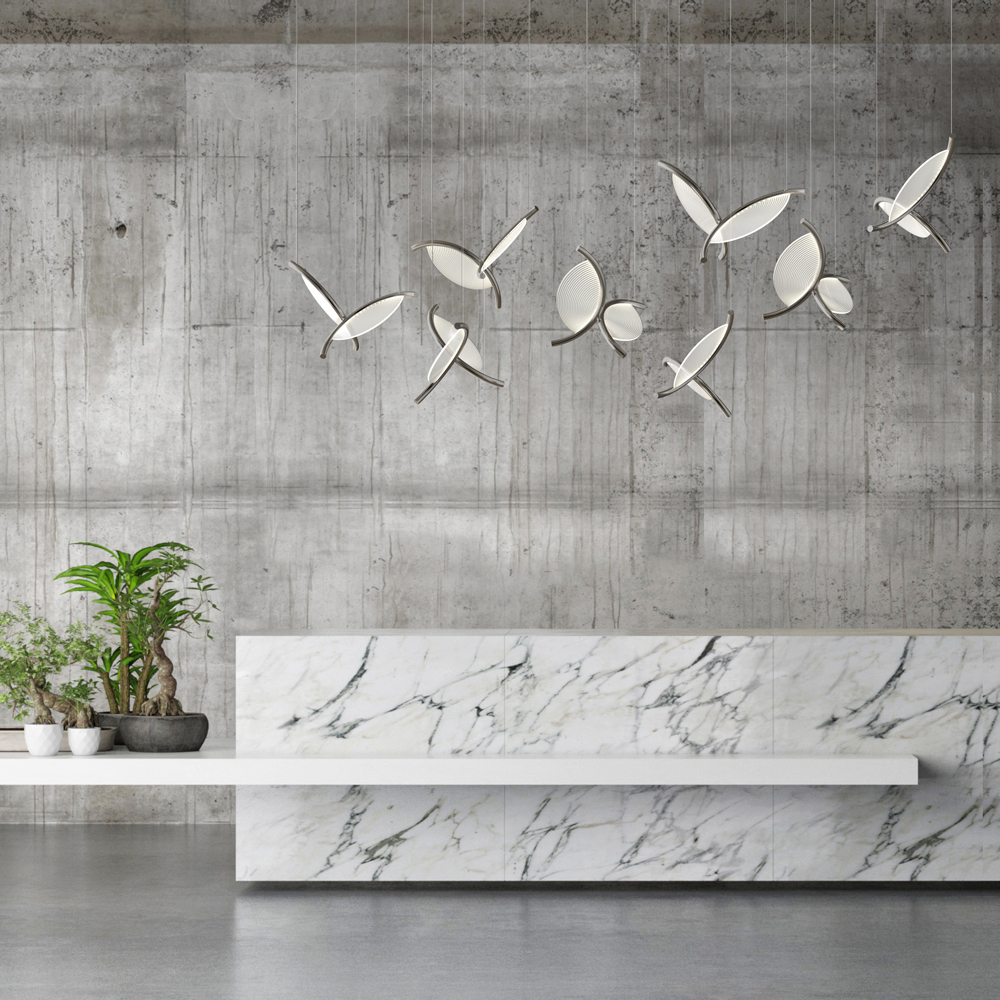 This petal-form chandelier redefines commercial lighting as a nature-inspired art installation, crafted from frosted acrylic petal shades (lightweight, soft diffusion) and matte metal frames (structural, understated finish). It emits a warm 2700K glow, mimicking a cluster of illuminated petals to create an organic, immersive ambiance.