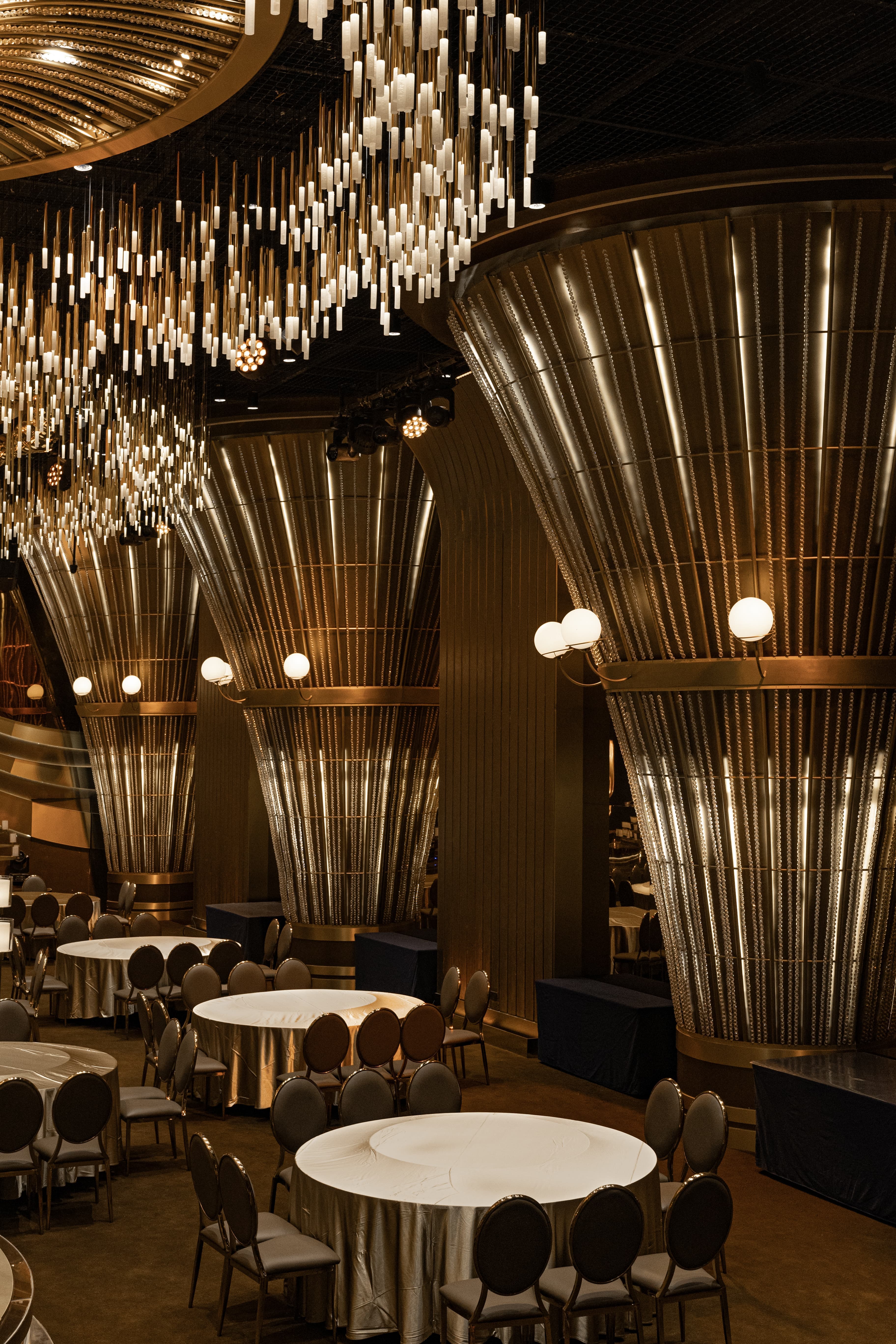 - Style Positioning: Contemporary commercial luxury; the curved linear form complements modern restaurants, boutique cafes, or high-end retail spaces (paired with bold wall decor).