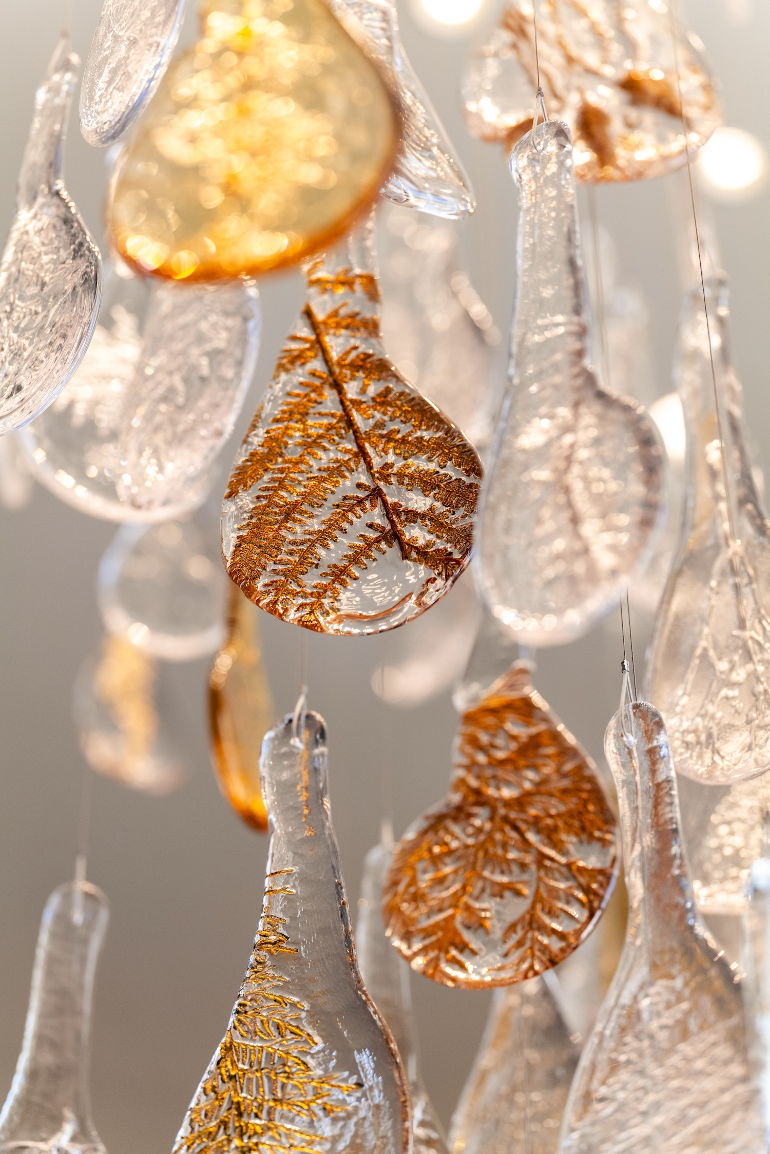 - Material: Hand-blown crystal glass (high-transparency, scratch-resistant, strong light refraction) + thin steel cables (corrosion-proof, invisible) + built-in LED beads (energy-efficient, durable).