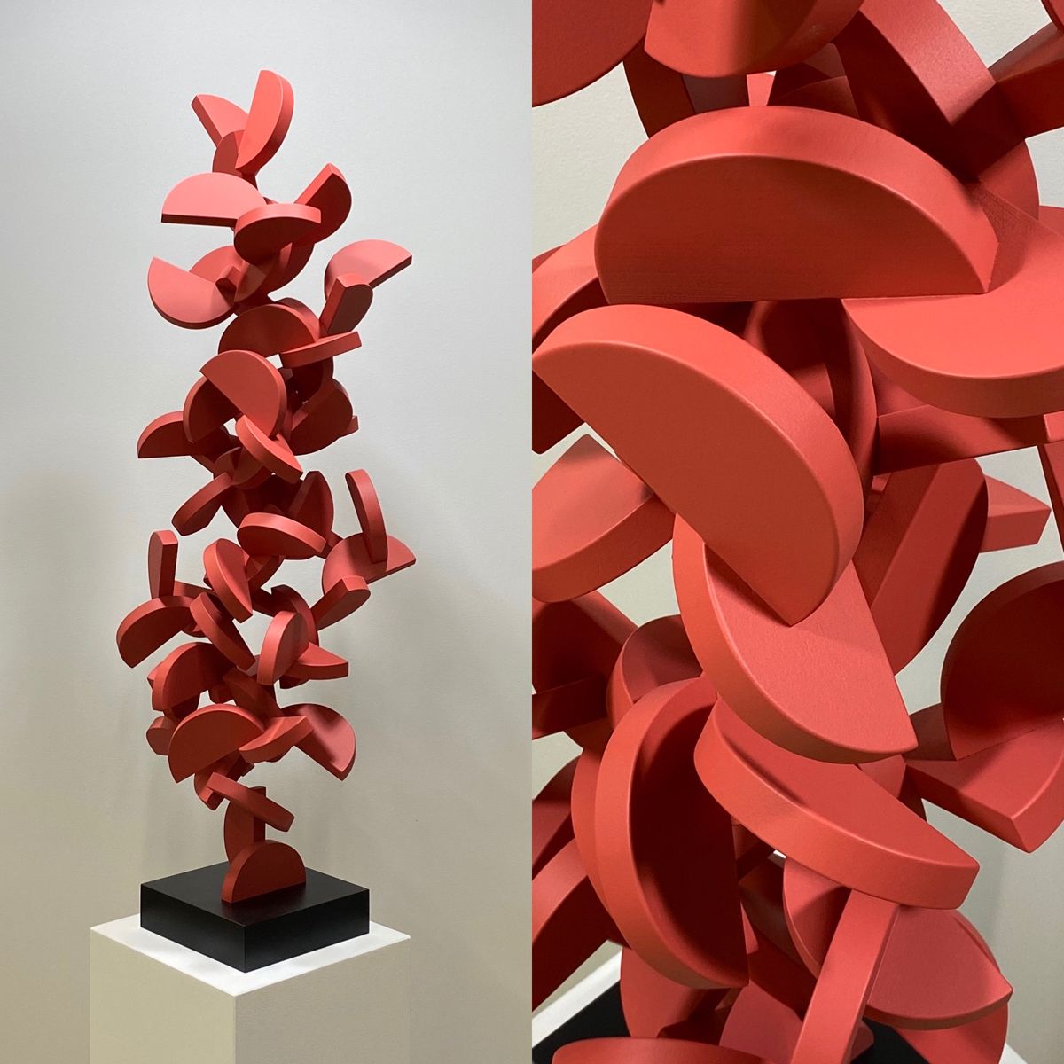 This home decor sculpture uses 304 stainless steel + automotive-grade lacquer as its core material: the metal base is polished through 12 processes, then coated with 3 layers of high-gloss lacquer to present a rich burgundy color (Pantone 18-1664TPX), combining metallic texture with enamel-like warmth.